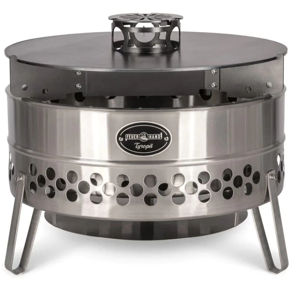 Die Feuerhand Grillplatte pypla2 verwandelt die Feuertonne Pyron oder die Feuerschale Tyropit in eine Kochstation und ermöglicht mehr als nur Grillen. Auf der massiven 6mm starken Stahlplatte kann man mit der Hitze nach Herzenslust aromatisch braten. Durch die gleichmäßige Hitzeverteilung lassen sich verschiedenste Köstlichkeiten auf der Platte zubereiten. Neben Fleisch eignet sie sich besonders gut für Fisch und Meeresfrüchte. Aber auch Burger, Gemüse, Desserts oder Frühstück mit Spiegelei, Pancakes und Speck gelingen auf der Grillplatte im Handumdrehen. Hohe Temperaturen und die indirekte Hitze ermöglichen ein saftiges Grillergebnis mit ansprechender Kruste. Der integrierte, abnehmbare Kochaufsatz in der Mitte sichert Eier, Würstchen und Co. gegen ein Abrutschen ins Feuer und dient zum Zubereiten von Eintöpfen, Beilagen oder Heißgetränken. So kann man die Hitze nutzen, um mit Freunden ganze Gänge auf der Grillplatte zuzubereiten. Die großzügigen Aussparungen versorgen die Feuertonne oder Feuerschale auch mit Kochgeschirr auf dem Aufsatz mit genügend frischem Sauerstoff, um das Feuer ordentlich brennen zu lassen. Außerdem ermöglicht die Aussparung in der Mitte des Aufsatzes ein sicheres Nachfüllen von Holz während der Benutzung. Mit dem dreiarmigen Trägergestell liegt die Grillplatte sicher auf der Feuertonne Pyron oder der Feuerschale Tyropit auf.Art.-Nr.: 100024969
