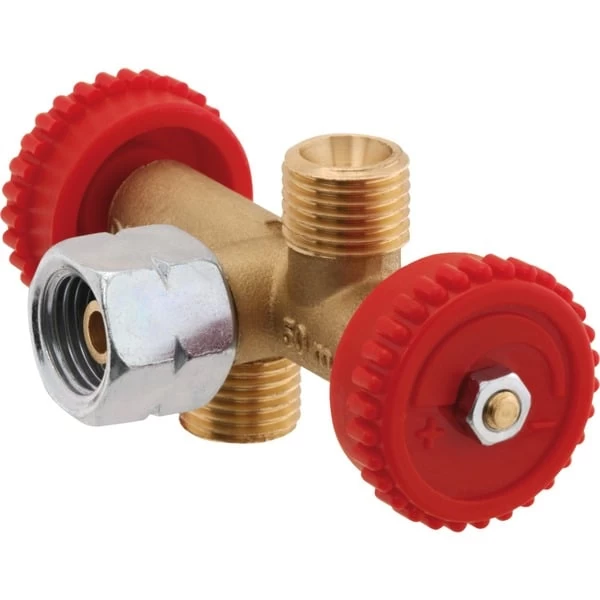 Das Abzweigventil 6970600 von GOK mit zwei Abgängen eignet sich zum gleichzeitigen Anschluss mehrerer Verbrauchsgeräte an einen Druckregler. Es wird an den Ausgang des Druckreglers angeschlossen und verfügt über eine Absperreinrichtung zur stufenlosen Regulierung der Gaszufuhr für z.B. Grills oder Gaskocher.Art.-Nr.: 1650901