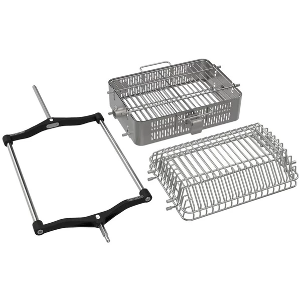 Das Kamado Joe JoeTisserie Grillkorb-Set KJ15091620 ist eine ideale Ergänzung für die JoeTisserie. Der Drehspießkorb wird einfach über den vorhandenen Spieß der Rotisserie geschoben und befestigt. Das Set enthält einen Rotisserie-Käfig, in dem sich z.B. eine Forelle wunderbar zubereiten lässt, und einen Rotisserie-Korb, der sich besonders für kleinteiliges Grillgut wie kleinere Geflügelteile, Garnelen oder auch Gemüse eignet. Ausgezeichnet eignet sich der Korb für die Zubereitung von Pommes oder Kartoffelspalten, aber auch für kleine Bratwürste. Durch die ständige Drehbewegung des Spießes werden die Leckerbissen von allen Seiten gleichmäßig knusprig und braun.Art.-Nr.: 1808760