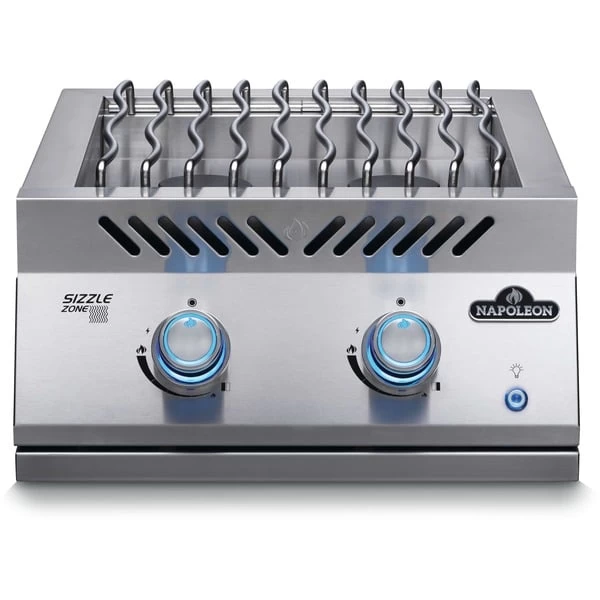 Der Einbau-Seitenbrenner BIB18RTPSS von Napoleon vervollständigt die Outdoorküche. Das elektronische JETFIRE Zündsystem und 2 Brenner mit zusammen 8,79 kW sorgen für zusätzliche Kochfläche zum Zubereiten von Beilagen und Soßen. Die großen, ergonomischen NIGHTLIGHT-Knöpfe sorgen für Ambiente und Sicherheit, sie leuchten in einem herrlichen Blau, das sich bei Verwendung der Brenner in Rot ändert. Der Drop-In-Seitenbrenner besteht aus der gleichen Edelstahl-Qualität wie die Einbau-Grills der Serie 700 und passt perfekt zur individuellen Außenküche. Die Edelstahl-Abdeckung schützt das Kochfeld bei Nichtbenutzung.Art.-Nr.: 1680114
