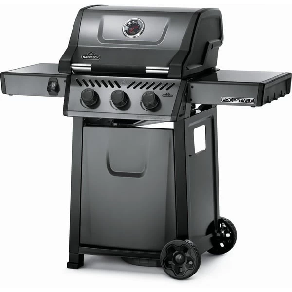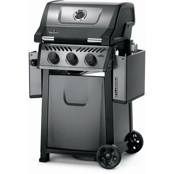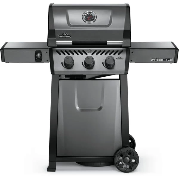 Der Napoleon Freestyle 365 Graphit ist ein kompakter Gasgrill mit erstklassigen Funktionen und unschlagbarem Preis-Leistungsverhältnis. Der Flammenstrahl des JETFIRE Zündsystems zündet die Hauptbrenner schnell, einfach und zuverlässig. Die Iconic Wave-Grillroste aus Gusseisen und die emaillierten Flammenschutzbleche ermöglichen eine gleichmäßige Hitze-Verteilung und ein perfektes Anbraten. Die Porzellanbeschichtung schützt sie dabei vor Rost. Der langlebige Feuerkasten aus Aluminiumguss reflektiert die Hitze des Grills und erzeugt so eine konvektive, backofenähnliche Umgebung und hervorragende Grillergebnisse. Die Temperatur der drei Edelstahlbrenner kann mit den ergonomischen Bedienknöpfen präzise gesteuert und über das integrierte Thermometer einfach kontrolliert werden. Die klassische Edelstahlblende und der Carbonfarbton verleihen dem leicht ablesbaren Thermometer einen stylischen Retrolook. Die schöne Graphit-Porzellanbeschichtung schützt den Deckel vor Abnutzung, Wettereinflüssen und Fingerabdrücken. Der Soft-Touch-Griff mit weicher Oberfläche ist wärmeabweisend und sorgt beim Öffnen und Schließen der Grillhaube für eine angenehme Griffigkeit. Auch die Reinigung des Gasgrills Freestyle 365 Graphit fällt anschließend dank der seitlich zu entnehmenden Fettauffangschale ganz leicht. Mit den beiden robusten Rollen kann der Grill leicht an jeden gewünschten Ort geschoben werden, und der geschlossene Unterschrank schützt die Gasflasche und den Wagen vor Umwelteinflüssen. Mit seinen einfach ausklappbarer Seitenablagen mit Aufhängern für Grillbesteck und einem Flaschenöffner ist der Freestyle für jede Gartenparty umfassend ausgestattet.Art.-Nr.: 1680019