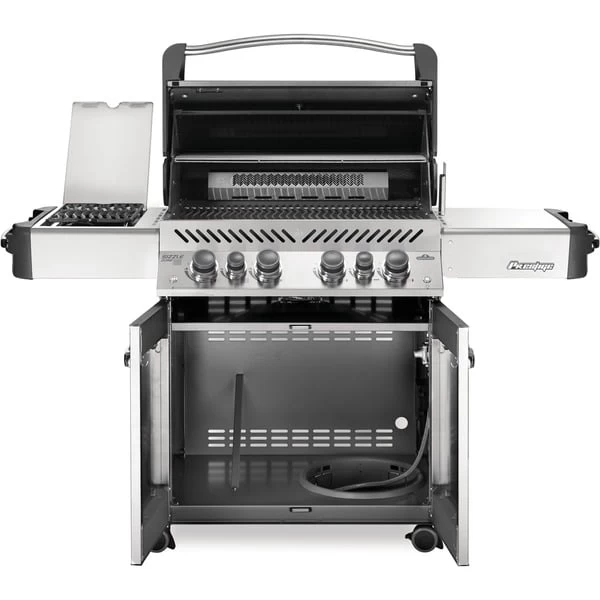 Der Napoleon Prestige P500 Edelstahl vereint unter seiner schicken platzsparenden Lift-Ease Rollhaube alles, was sich ein Grillmeister vorstellen kann. Mit vier Hauptbrennern, einem Infrarot-Heckbrenner für Gerichte vom Drehspieß und dem Infrarot SIZZLE ZONE Seitenbrenner für perfekte Steaks ermöglicht er vielfältigste Formen der Zubereitung. Mit der großzügigen Hauptgrillfläche plus Warmhalterost lassen sich Familie, Freunde, Nachbarn und der Fußballclub verköstigen. Praktisch und clever konstruiert sind auch die Seitenablagen aus Edelstahl: Links verbirgt sich die Sizzle Zone als Seitenbrenner. Außerdem ist die rechte Seitenablage klappbar, sodass sich der Grill noch einfacher aufbewahren lässt. Die großzügigen Seitenablagen bieten außerdem extra Zubereitungsfläche sowie praktische Gewürz- oder Getränkehalter und Besteckhaken. Die ergonomischen Drehregler besitzen eine angenehme Haptik und sorgen für eine präzise Temperatursteuerung. Das Napoleon-typische Wellen-Design der WAVE Grillroste sorgt für eine gleichmäßigere Hitzeverteilung und hält auch kleineres Grillgut sicher auf dem Rost. Edelstahl-Flammenschutzeinsätze bilden eine extra Oberfläche und werden so zu Aromaschienen, die dem Grillgut eine besonders aromatische Grillnote verleihen. Diese Aromaschienen sind dank des geradlinigen und durchdachten Designs besonders einfach zu reinigen. Der Infrarot-Heckbrenner eignet sich hervorragend zum Grillen großer Bratenstücke und ist natürlich ideal für Drehspieß-Gerichte geeignet (Drehspieß nicht im Lieferumfang enthalten). Mit der separat erhältlichen Räucherpfeife kann man den Gasgrill rasch in einen Smoker verwandeln, der für ein besonderes Aroma sorgt, einfach die Räucherpfeife mit den Lieblings-Räucherchips füllen und über einen entzündeten Brenner legen. Oder man benutzt den 2 in 1 Holzkohleeinsatz mit integriertem Räucherbereich. Die Kohlen werden rasch vom Gasbrenner befeuert und sorgen für das beliebte Räucherfeeling beim Grillen.Art.-Nr.: 1495849