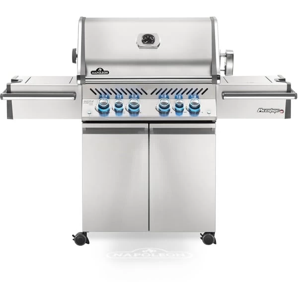 Der Napoleon Gasgrill Prestige Pro 500 vereint hochwertigste Materialien, innovative Brennertechnologien, zeitloses Design und komfortable Features. Er begeistert mit SAFETY GLOW Drehreglern, der LIFT EASE Rollhaube, einem Infrarot-Heckbrenner für saftige Drehspieß-Gerichte, einer Rotisserie, der innovativen Infrarot SIZZLE ZONE mit höhenverstellbarem Edelstahl-Grillrost und vielem mehr. Steaks, Braten, Drehspieß und andere herkömmliche Grillgerichte finden hier ihre jeweils optimale Grillzone. Der keramische Infrarotbrenner der SIZZLE ZONE erzeugt Temperaturen von bis zu 800°C, womit das perfekte Steak und knackiges Gemüse gegrillt werden können. In der robusten und langlebigen Aluguss-Grillkammer fungieren Flammenschutzeinsätze gleichzeitig als zweistufige Aromaschienen, die abtropfende Fleischsäfte in Aromaspender für das Grillgut verwandeln. Auf der 71 x 46cm großen Hauptgrillfläche sorgen die 9,5mm dicken WAVE Edelstahl-Stabgrillroste für das typische, beliebte Napoleon-Branding. Der abnehmbare Edelstahl-Warmhalterost bietet eine zusätzliche Grill- und Garfläche. Die beidseitigen Ablagen halten nebst Seitenbrenner und Zubereitungsfläche auch ein Fach für kühle Getränke mittels Crushed Ice und ein integriertes Schneidebrett, verchromte Handtuchhalter, Besteckhaken und Gewürzablagen bereit. So sind Grillzange und anderes Grillzubehör stets zur Hand. Und wenn das Grillvergnügen mal etwas länger dauert, ermöglichen die neuen SAFETY GLOW Drehregler mit integrierter Hintergrundbeleuchtung und Farbwechsel (ändert sich von blau auf rot, wenn Gas strömt) auch bei Dunkelheit eine präzise Bedienung. Der Prestige Pro 500 ist jetzt mit einem Bewegungssensor ausgestattet, so dass die SAFETY GLOW Regler bei Bewegung bzw. Annäherung zum Grill aufleuchten und das Napoleon Logo per LED auf den Boden projiziert wird. Die platzsparende LIFT-EASE Rollhaube mit integriertem ACCU PROBE Thermometer basiert auf Schwerpunkt-Technologie, wodurch sie kinderleicht anzuheben ist und nicht über die Rückseite des Grills herausragt.Art.-Nr.: 1591484