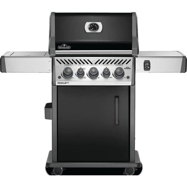 Die als SE bezeichnete Special Edition der Rogue-Serie von Napoleon setzt den mit der SIZZLE ZONE ausgestatteten Rogue Modellen die Krone auf. So verfügt der Rogue SE 425 nicht nur über den größeren Infrarot-Seitenbrenner, sondern auch über einen Infrarot-Heckbrenner aus Edelstahl. Dieser sorgt in Verbindung mit dem höheren Deckel dafür, dass die Grills zu wahren Rotisserie-Spezialisten werden. Ob ein ganzes Hähnchen oder ein Spanferkel, der Rogue SE 425 liefert ein perfektes Grillergebnis mit herrlicher Kruste. Der Rogue SE 425 wird mit einem Drehspieß-Set inklusive Motor geliefert. Man kann also direkt „losgrillen“. Das im Deckel integrierte ACCU PROBE Thermometer misst exakt die Temperatur unter dem Grilldeckel, ohne diesen öffnen zu müssen. Weitere Highlights sind die Grillroste aus porzellanemailliertem Gusseisen, die LED-beleuchteten Drehregler und der praktische Flaschenöffner am Seitentisch. So ist man auch in den Abendstunden für jede Grillparty bestens ausgerüstet.Art.-Nr.: 1680101