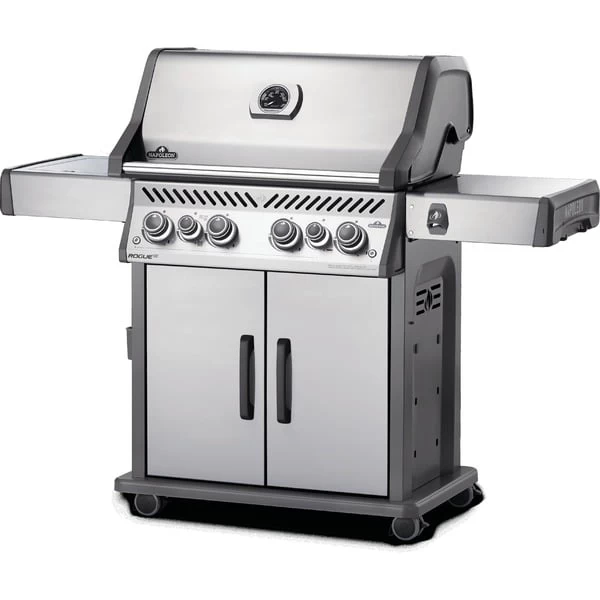 Die als SE bezeichnete Special Edition der Rogue-Serie von Napoleon setzt den mit der SIZZLE ZONE ausgestatteten Rogue Modellen die Krone auf. So verfügt der Rogue SE 525 Edelstahl nicht nur über den größeren Infrarot-Seitenbrenner, sondern auch über einen Infrarot-Heckbrenner. Dieser sorgt in Verbindung mit dem höheren Deckel dafür, dass die Grills zu wahren Rotisserie-Spezialisten werden. Ob ein ganzes Hähnchen oder ein Spanferkel, der Rogue SE 525 Edelstahl liefert ein perfektes Grillergebnis mit herrlicher Kruste. Auch der Warmhalterost wurde nochmals vergrößert. Das im Deckel integrierte ACCU PROBE Thermometer misst exakt die Temperatur unter dem Grilldeckel, ohne diesen öffnen zu müssen. Weitere Highlights sind die WAVE Grillroste aus Edelstahl, die neuen LED-beleuchteten Drehregler und der praktische Flaschenöffner am Seitentisch. So ist man auch in den Abendstunden für jede Grillparty bestens ausgerüstet.Art.-Nr.: 1591402