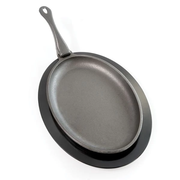 Die Napoleon Gusseisen-Grill- und Bratpfanne 56003 ist das perfekte Modell für Einsteiger und Profis. Ob am Grillrost, am Seitenbrenner oder am Küchenherd, diese Gusseisen-Pfanne macht überall eine perfekte Figur. Während des Grillens oder Bratens wird einfach der Griff ausgehängt. So bleibt dieser schön kühl und das Pfannengericht kann professionell samt Untersetzer serviert werden. Professionell eingebranntes Gusseisen überdauert Generationen. Diese Grillpfanne kann man auch ganz einfach selbst einbrennen: Dazu einfach waschen, mit einer dünnen Schicht pflanzlichen Fetts beschichten und bei ca 180°C in einen eine Stunde vorgeheizten Grill oder Ofen stellen. Dieser Vorgang sorgt für eine nicht-haftende Oberfläche, sodass man jahrelang Freude an der Gusseisen-Pfanne hat. Art.-Nr.: 1404519