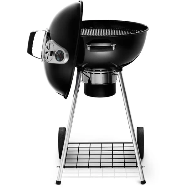 Napoleons Holzkohlegrill Charcoal Kettle NK22K-LEG-2 mit geschraubten Beinen ist sehr komfortabel und sorgt für das traditionelle Grillvergnügen. Der dreifach höhenverstellbare, klappbare Edelstahl-Grillrost (Ø 57cm) sorgt für eine gleichmäßig verteilte und lang anhaltende Hitze. Ausgestattet mit dem optimierten Lüftungssystem, welches sich komplett dicht schließen lässt, kann der Grill auch sehr niedrige Temperaturen erreichen. Der Deckel aus Platinum-Porzellan mit ACCU PROBE Thermometer lässt sich dank seinem Cool Touch Griff einfach öffnen und dank der integrierten Deckelhalterung an der Seite der Kugelunterseite einhängen. Ein großer Aschebehälter aus Stahl und der robuste Kohlerost sind nur weitere Annehmlichkeiten. Auf seinen großen, wetterbeständigen Rädern lässt sich der NK22K-LEG-2 einfach durchs Gelände ziehen.Art.-Nr.: 1404249