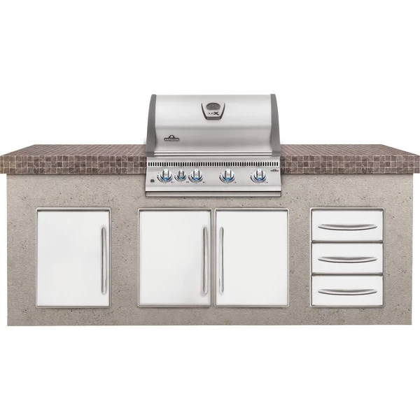 Der NAPOLEON Einbaugrillaufsatz BILEX485 begeistert mit einem kompletten Edelstahl-Grillssystem und fünf Brennern. Vier Edelstahl-Brenner heizen der 68cm x 46cm Grillfläche ordentlich ein. Dort sorgen WAVE™ Grillroste aus Edelstahl für die ideale Hitzeverteilung. Ist der Warmhalterost gerade nicht im Einsatz, bietet der BILEX485 Platz für ein optionales Drehspieß-Set. Das wird vom Keramik-Heckbrenner befeuert, der auch für indirektes Grillen ideal geeignet ist. Geflügel oder große Bratenstücke gelingen so unter der doppelwandigen LIFT EASE™ Rollhaube besonders lecker. Beleuchtete iGLOW™ Bedienelemente ermöglichen eine präzise Temperaturregelung, auch wenn das Grillvergnügen mal länger dauert. Der BILEX485 Einbaugrillaufsatz kann auf den passenden OASIS-Unterschrank aufgesetzt oder in feuerfestes Material eingemauert werden. Art.-Nr.: 1850886