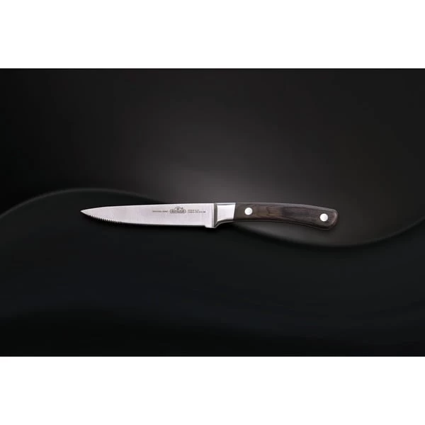 Ein Steakmesser hat zwei zentrale Aufgaben, es muss leichtgängig durch das perfekt gegarte Stück Fleisch gleiten und es soll dabei großartig aussehen. Napoleons Steakmesser 55208 mit einer über 12cm langen Klinge kann sogar mehr als das: Die Klinge erstreckt sich über die gesamte Länge und ist optimal ausbalanciert. So liegt das Napoleon Steakmesser gut und sicher in der Hand und gleitet mühelos durchs Grillgut. Zwei unterschiedliche Schnittbereiche unterstützen dabei den perfekten Schnitt: Der Säge-Bereich setzt gezielt an, während die glatte Klinge mühelos einen geraden Schnitt hinterlässt.Art.-Nr.: 1404518
