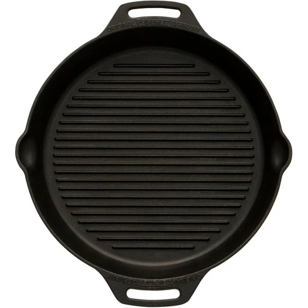 Die gusseiserne Petromax Grill-Feuerpfanne gp35h gehört mit ihrer exzellenten Wärmespeicherung zur Ausstattung jeder Küche. Sie ist für das Zubereiten von Fleisch, Gemüse und Co. mit dem besonderen Grillaroma ideal, da sich die Hitze in Gusseisen gleichmäßig verteilt und lange gespeichert wird. Die Rillen am Pfannenboden geben dem Bratgut nicht nur das typische Grillmuster, sondern ermöglichen auch besonders fettarmes und gesundes Braten. Ob in der Draußen-Küche über dem offenen Feuer gekocht wird oder auf dem Herd zuhause, man kann die Feuerpfanne sowohl auf herkömmlichen Herdplatten, auf Gasflammen, im Backofen als auch im Freien auf einer Kochstelle, über einem Lagerfeuer oder auf einem passenden Grill verwenden. Das Gusseisen mit seiner ausgezeichneten Wärmeverteilung und -speicherung ist dank der vorbehandelten Oberfläche (seasoned finish) sofort einsatzbereit und leicht zu pflegen.Art.-Nr.: 1532913