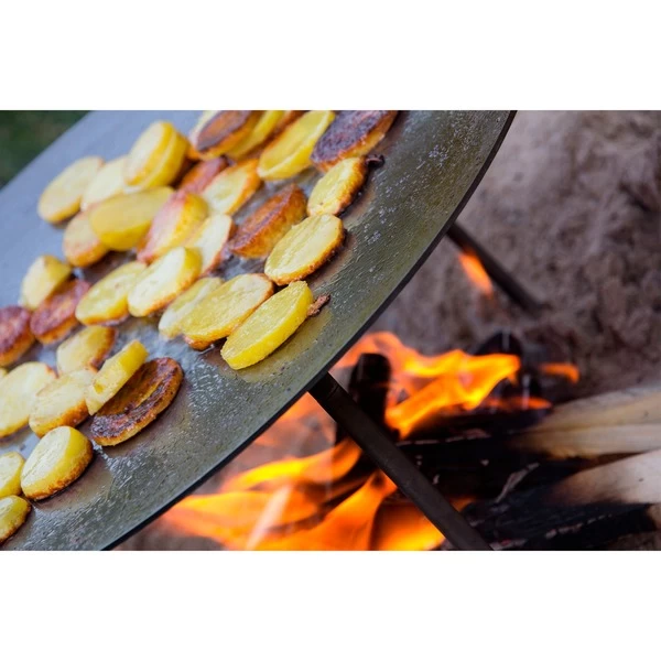 Die Grill- und Feuerschale fs48 von Petromax bietet 2 in 1: Grillpfanne und Feuerschale, das Multitalent aus Stahl. Entweder man entfacht ein Lagerfeuer in der Feuerschale, um den darunterliegenden Boden unversehrt zu lassen oder man stellt die Grillschale mit ihren drei Standbeinen (23cm) über das offene Feuer, um leckeres Essen zuzubereiten. Das Besondere dabei: In der Mitte wird die Schale heißer als am äußeren Rand. Ein saftiges Stück Fleisch gart am Rand nach, während in der Mitte noch das Gemüse brutzeln kann. Bei jedem Brat- und Brennvorgang baut sich eine Patina auf, die für einen natürlichen Antihafteffekt sorgt. Auch ohne ihre Standbeine kann die Grillschale in den Größen fs48 und fs56 z.B. auf einem Atago verwendet werden.Art.-Nr.: 1533716