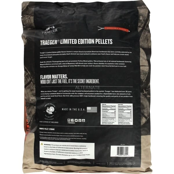 Die hochwertigen Premium-Holzpellets von Traeger bestehen zu 100% aus natürlichem Hartholz mit Lebensmittelqualität und bieten die perfekte Verbrennung für einen optimalen Holzgeschmack. In den USA hergestellt und vom Sägewerk bis zum Regal beaufsichtigt, sind die Traeger-Pellets eine saubere und gesunde Brennstoffquelle mit verschiedenen Geschmackskombinationen. Die Mischung TURKEY BLEND aus Ahorn- und Hickory-Pellets mit einem Hauch Rosmarin eignet sich mit ihrem vollmundigen Rauchgeschmack hervorragend zur Aromatisierung von Truthahn und jedem anderen Geflügel.Art.-Nr.: 1848924