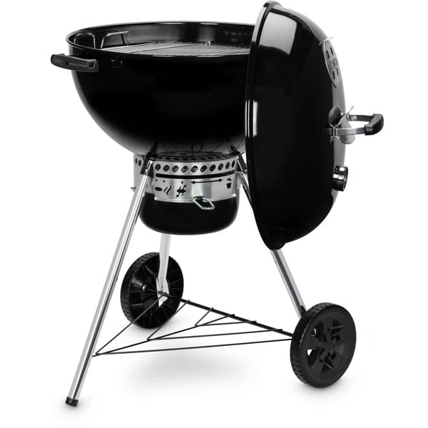 Der Kugelgrill Weber Original Kettle E-5730 wurde mit neuen Merkmalen und Funktionen wie einer Räuchereinstellung zum Garen bei niedrigen Temperaturen, dem One-Touch-Reinigungssystem mit großem Ascheauffangbehälter und integrierten Besteckhaken am Griff nun weiter optimiert. Er eignet sich für das direkte und indirekte Grillvergnügen. Mit seiner einfachen Handhabung und Pflege, seinen Sicherheits- sowie Ausstattungsmerkmalen lässt der One-Touch Original Kettle keine Wünsche mehr offen. Das One-Touch-System ermöglicht in Verbindung mit dem Lüftungsschieber im Deckel eine sehr gute Temperatur- und Umluftsteuerung im Kessel, die das lästige Verstellen des Grillrostes in der Höhe vollkommen überflüssig macht.Art.-Nr.: 1500278