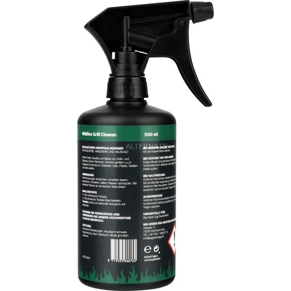 Der Wildfire Grill Cleaner ist ein natürlicher, biologisch voll abbaubarer multifunktionaler Reiniger in einer praktischen Sprühflasche. Er löst Fett, Eiweiß, Stärke und Rauchrückstände. Man braucht ihn nur aufsprühen, einwirken lassen und abwischen. Sogar eingebrannter Schmutz lässt sich dann mit einem Schwamm oder einer Bürste einfach und leicht entfernen. Der Wildfire Grill Cleaner eignet sich perfekt für Holzkohle- und Gasgrills, Öfen, Arbeitsflächen oder auch Küchengeräte, für alle Oberflächen aus Edelstahl, Aluminium, Emaille, Chrom, Kunststoff, und ähnliche.Art.-Nr.: 1621265